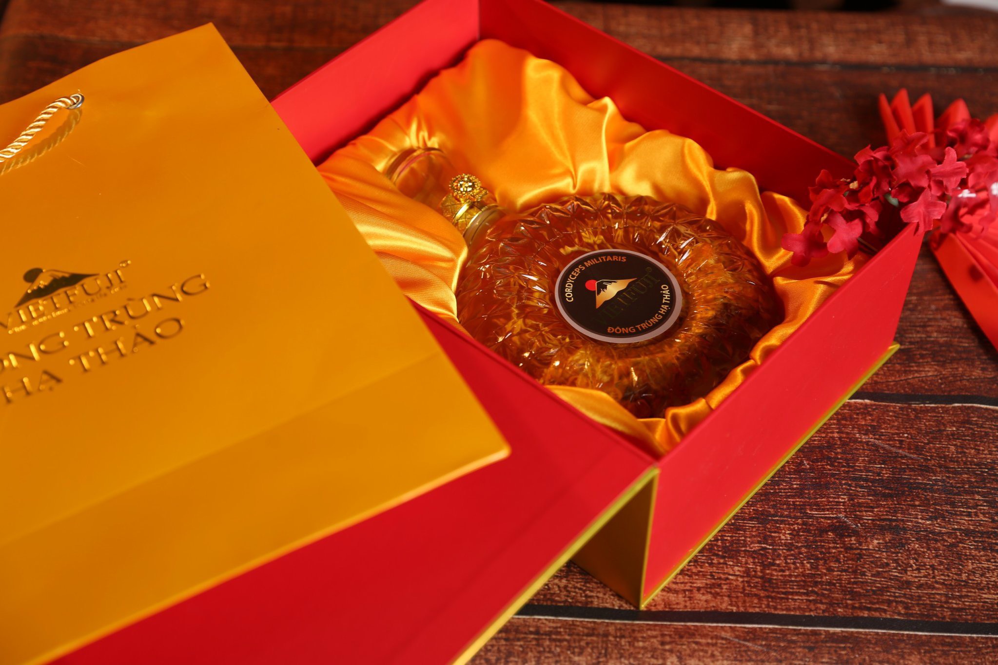 HỘP QUÀ HOÀNG TỬU (Đông Trùng Hạ Thảo nguyên khối cấy trong chai XO500ml)